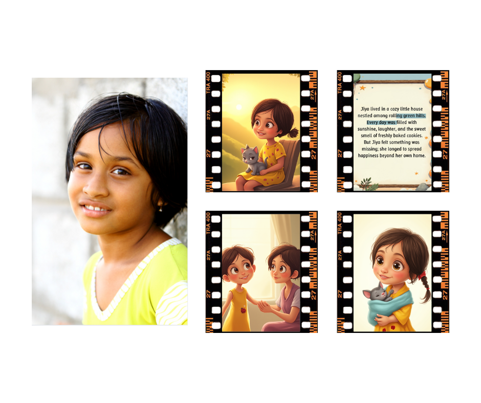 Not just their name… but their face, their character, their dreams — beautifully crafted in an AI-powered illustrated story made just for them.